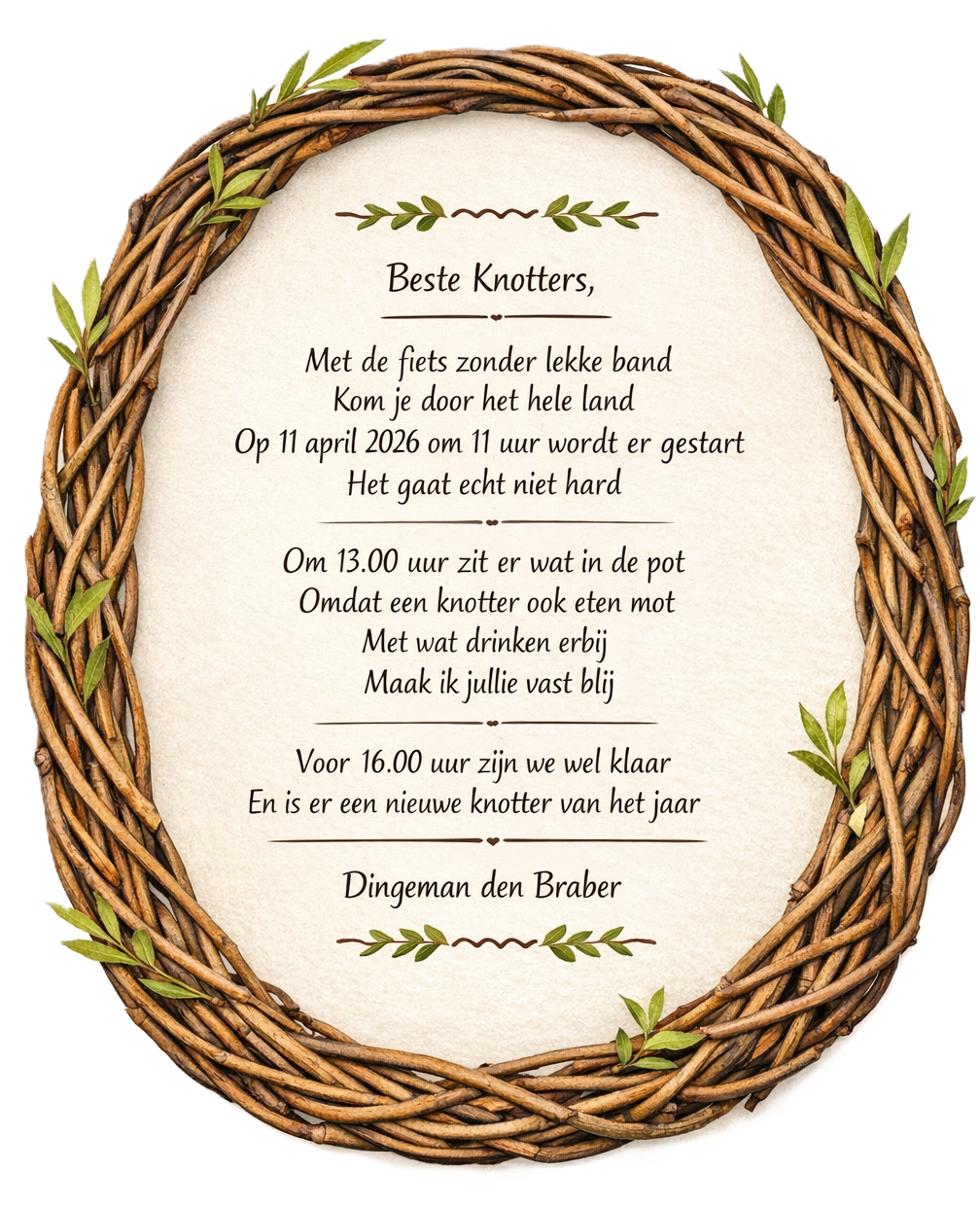 Dat hebben we gedaan op 12 april 2025 op de Sportcampus Molenland in Wilnis, met een grote opkomst van knotters van de laatste seizoenen, maar ook velen die in het verleden hun steentje hebben bijgedragen. Mensen die verhuisd zijn naar buiten de regio, andere vrijwilligersactiviteiten zijn gaan doen of vanwege hun leeftijd de zaag aan de wilgen hebben gehangen.